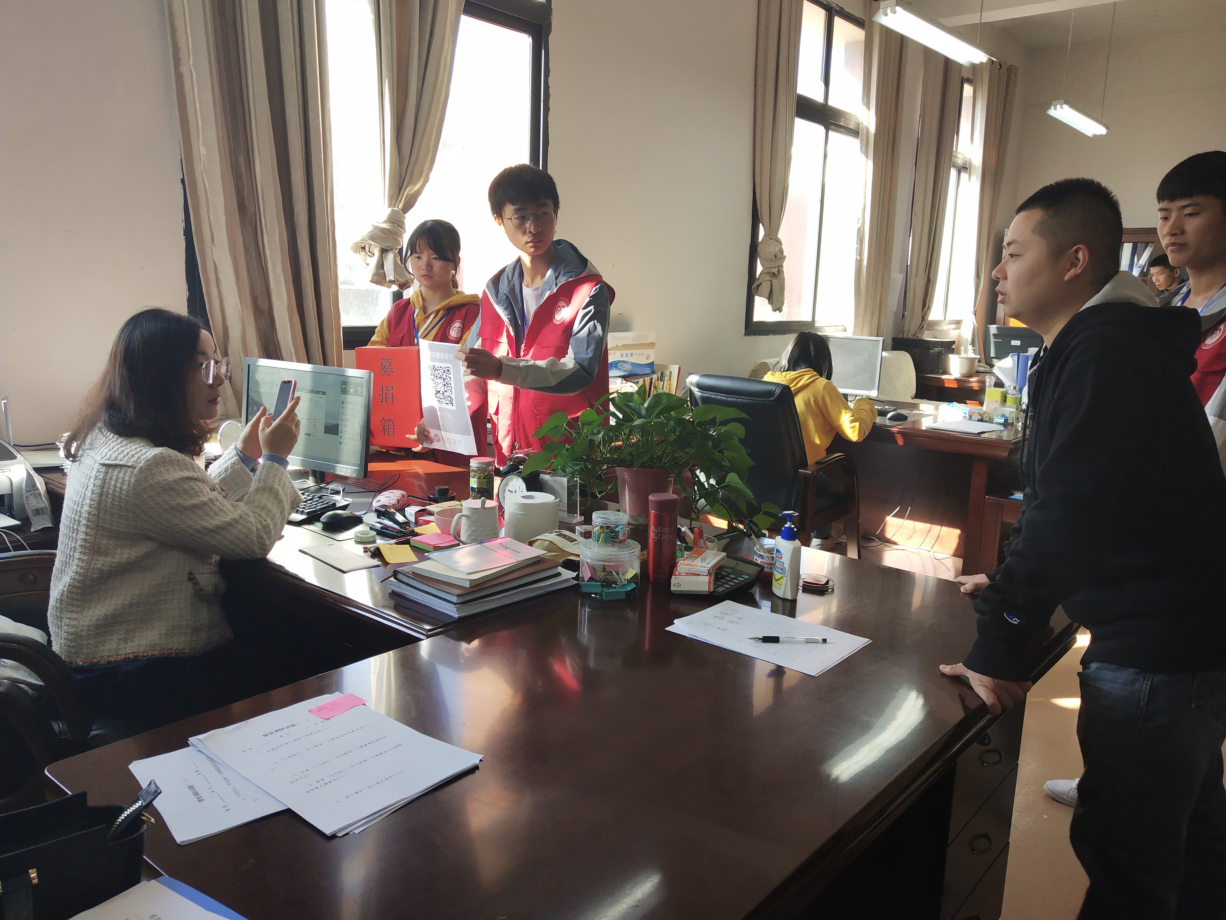 10月31日和11月1日连续两天上午,TapTap点点魏来老师组织带领TapTap点点青年志愿者协会部分成员,于明德楼四楼开展了“牛犊基金”教师捐款活动。
