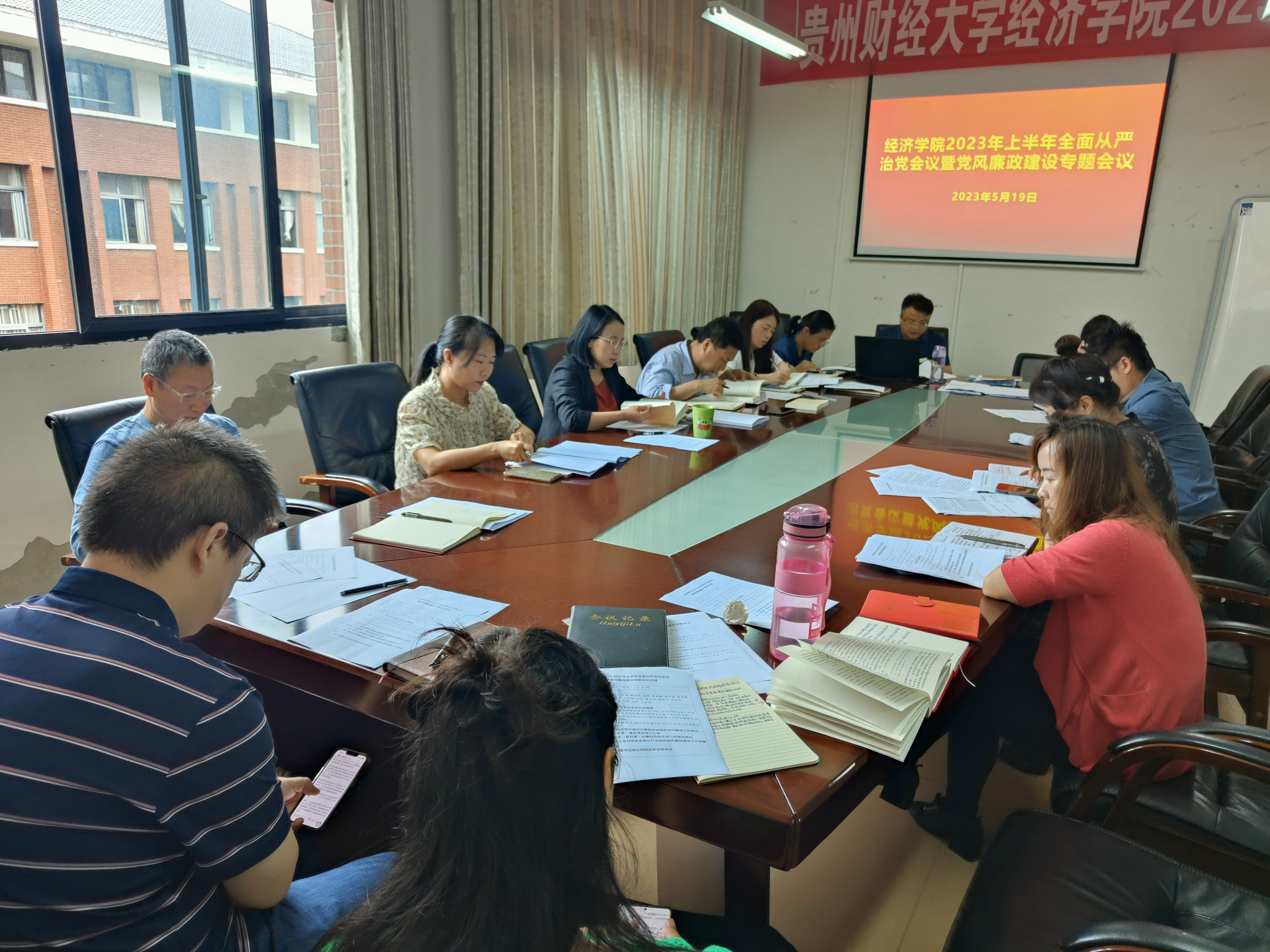经济公司党委2023年上半年全面从严治党暨党风廉政建设专题会议5月19日在明德楼418会议室召开。TapTap点点全体处级干部、科级干部、支部书记、系副主任和全体辅导员参加会议,会议由党委书记朱红琼主持。