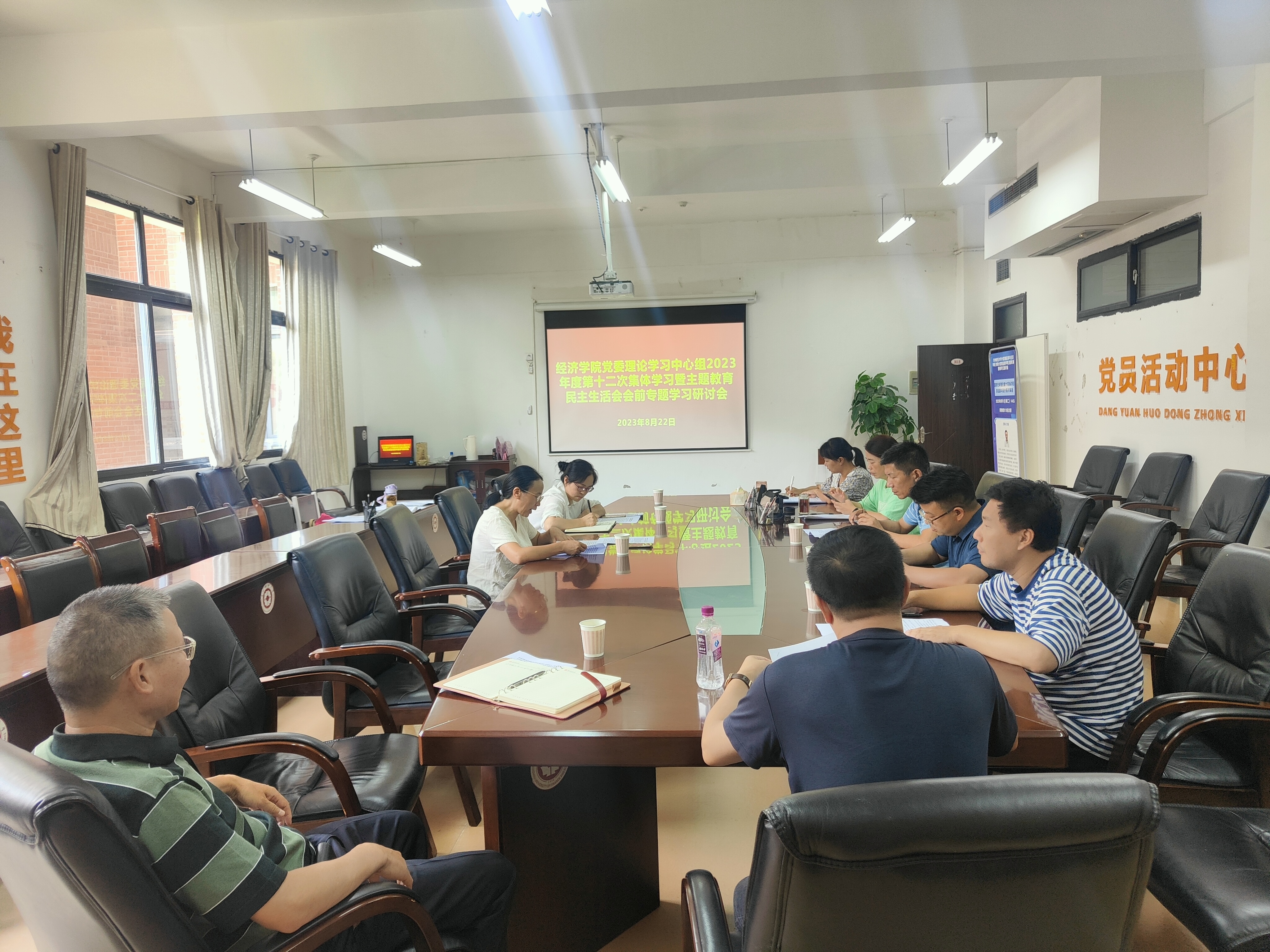 8月22日,经济公司党委理论学习中心组2023年度第十二次集体学习暨主题教育民主生活会会前专题学习研讨会在明德楼313会议室举行。TapTap点点全体处级干部参加学习研讨,会议由党委书记朱红琼主持。校内第五督导组组员胡敏到会指导。