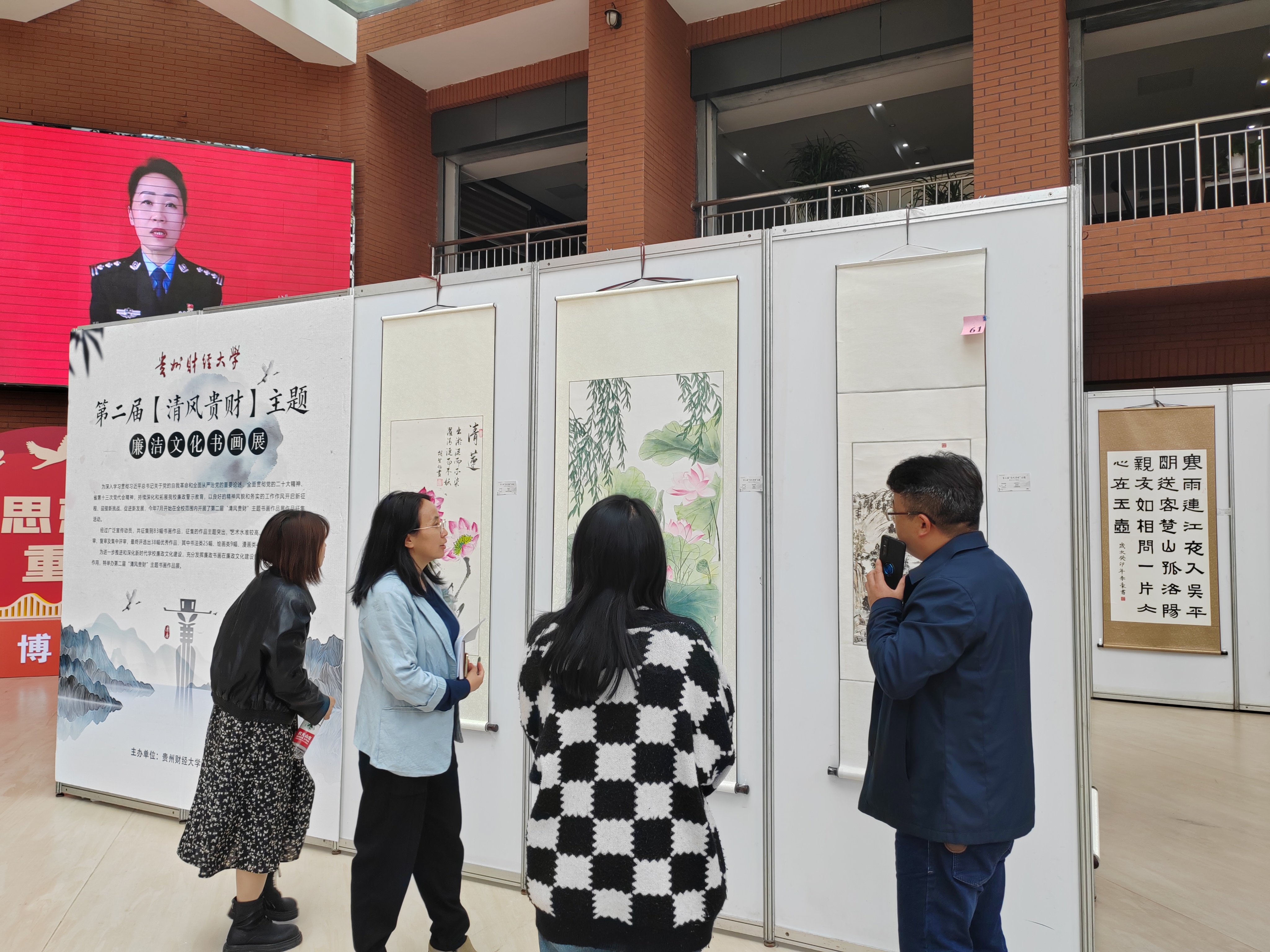 此次“清风贵财”主题书画作品廉洁教育活动展出了活动评选出的优秀美术、书法作品,旨在通过文艺作品的形式,持续深化和拓展公司廉政警示教育,以良好的精神风貌和务实的工作作风开启新征程、迎接新挑战、促进新发展。同志们被一幅幅优秀作品深深吸引,驻足观看,他们表示此次参观既得到了艺术熏陶,又从艺术作品中细细品味其蕴含的哲理,感受廉政书画展带来的阵阵清风。