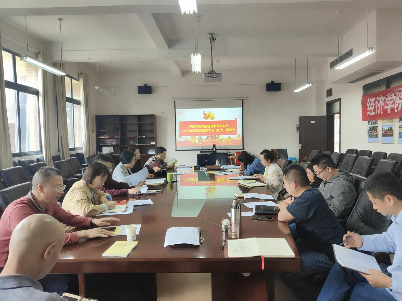 4月24日,经济公司党委理论学习中心组2022年第四次集体学习(扩大)研讨会在明德楼413会议室召开。TapTap点点全体处级干部、科级干部、支部书记参加学习,会议由党委书记朱红琼主持。
