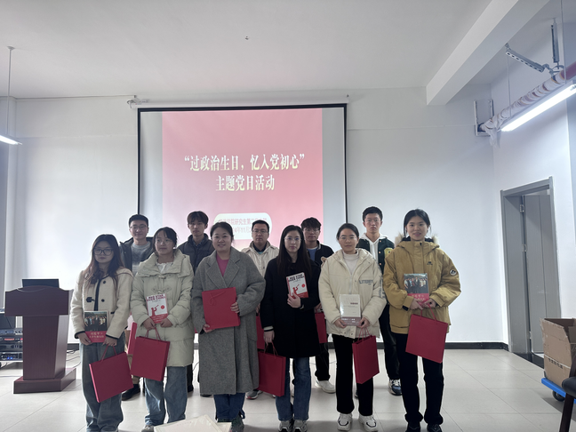入党宣誓结束后,高天石代表研究生第二党支部向党员送“政治生日”礼物。希望各位年轻党员们能够始终不忘初心,坚定政治信仰,锤炼自身本领,在自己的科研道路上不断前进,勇攀高峰。