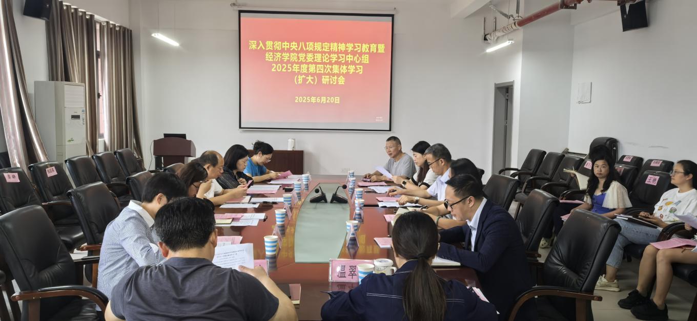 (来源:党委办公室 高天石 图文报道)为进一步加强党委理论学习中心组学习列席旁听工作,督促指导各院级党组织切实提高理论学习中心组学习质量,6月20日,公司党委委员、副董事长李汉文在文澜楼505会议室列席旁听了经济公司党委理论学习中心组2025年度第四次集体学习(扩大)研讨会,并对学习情况进行点评指导。经济公司党委书记陈劲松主持会议。