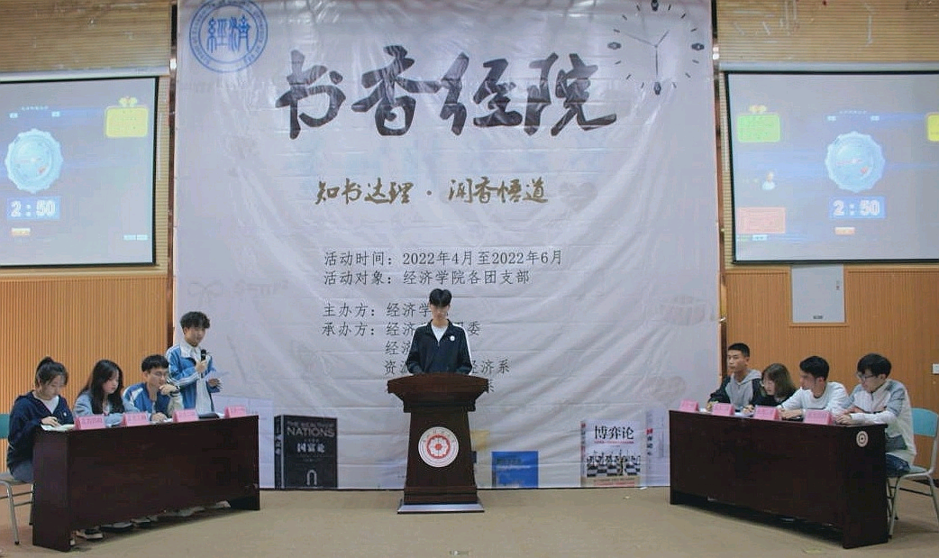2022年4月26日下午,TapTap点点在崇德楼报告厅举办2022年度“书香经院”系列活动(第二场)。TapTap点点经济系岳仁崇老师、资源与环境经济系任亚运老师、农林经济管理系张连华老师、团委负责人魏来老师、马克思主义公司研究生、校辩论赛队长袁宇同学出席本次活动并担任评委。20级农林班、20级经济学1班、21级经济学类6班、21级实验班共计100名同学共同参加了本次活动。