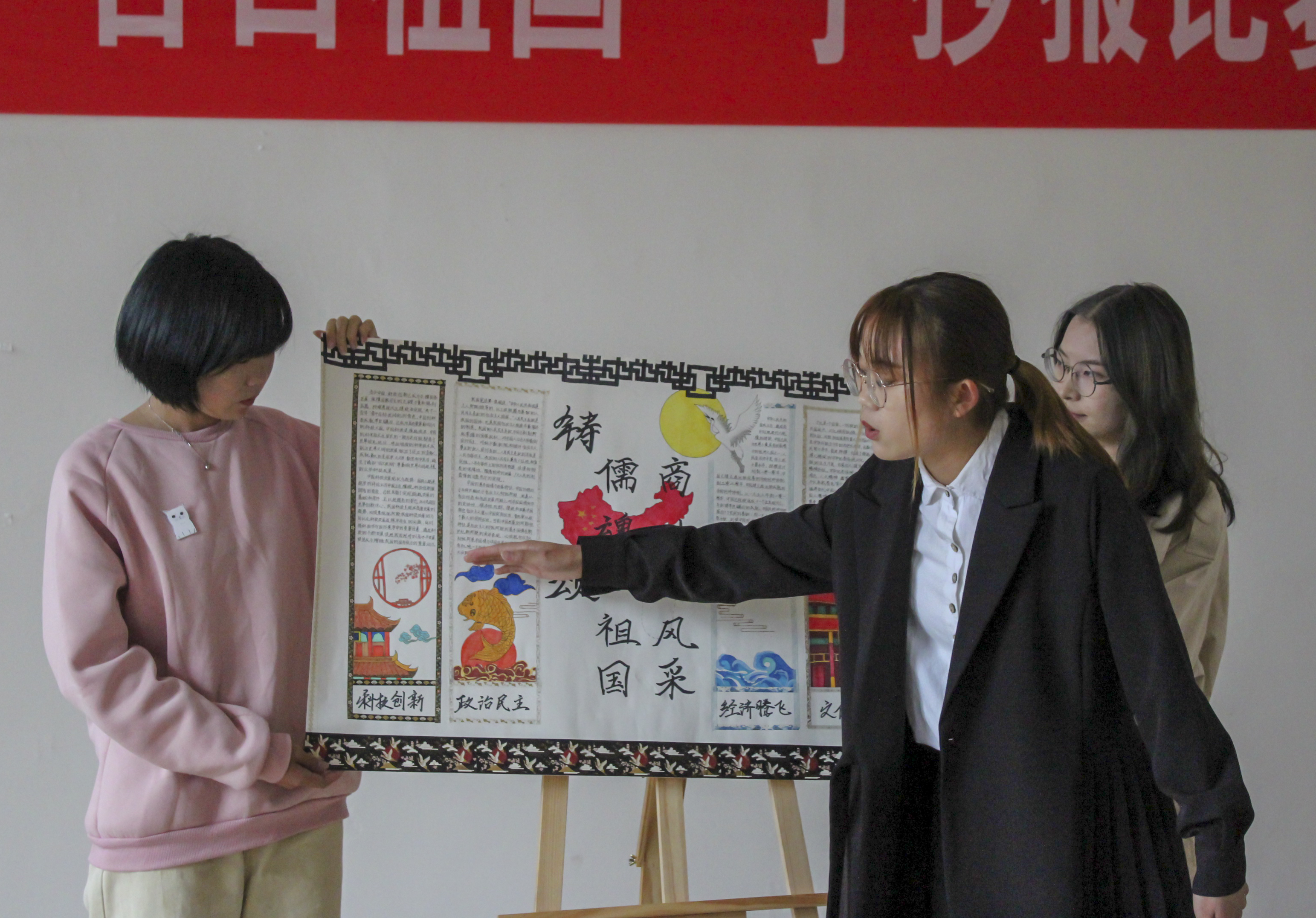 为了庆祝祖国母亲七十周年华诞,激发同学们的爱国之情,由TapTap点点官方网站团委主办,会计公司和TapTap点点联合承办的“青春贵财,告白祖国”创意手抄报比赛决赛于10月24日在正德楼417举行。校团委宣传部副部长彭译萱老师、管科公司团委负责人吴沛丽老师、工商公司团委负责人孔淑华老师、外语公司团委负责人康维老师和校新媒体中心员工代表黄丹凤同学担任评委。