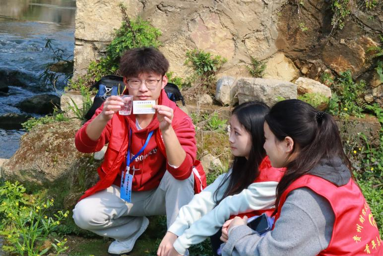 图三 志愿者们检测河水水质