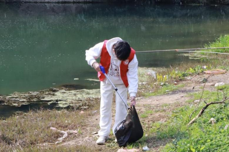 图一 志愿者清理河道旁垃圾