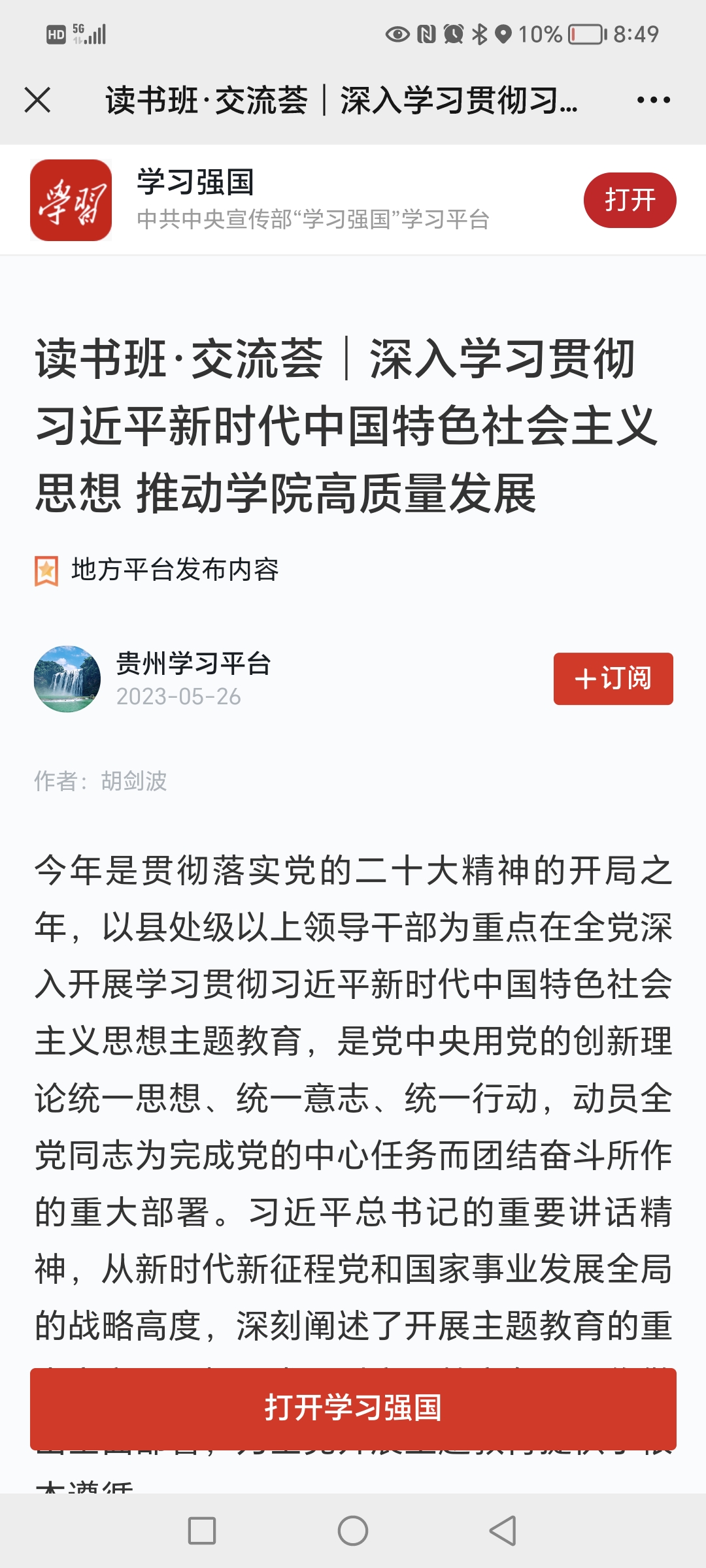 (来源:《学习强国》贵州学习平台)今年是贯彻落实党的二十大精神的开局之年,以县处级以上领导干部为重点在全党深入开展学习贯彻习近平新时代中国特色社会主义思想主题教育,是党中央用党的创新理论统一思想、统一意志、统一行动,动员全党同志为完成党的中心任务而团结奋斗所作的重大部署。习近平总书记的重要讲话精神,从新时代新征程党和国家事业发展全局的战略高度,深刻阐述了开展主题教育的重大意义和目标要求,对主题教育各项工作做出全面部署,为全党开展主题教育提供了根本遵循。