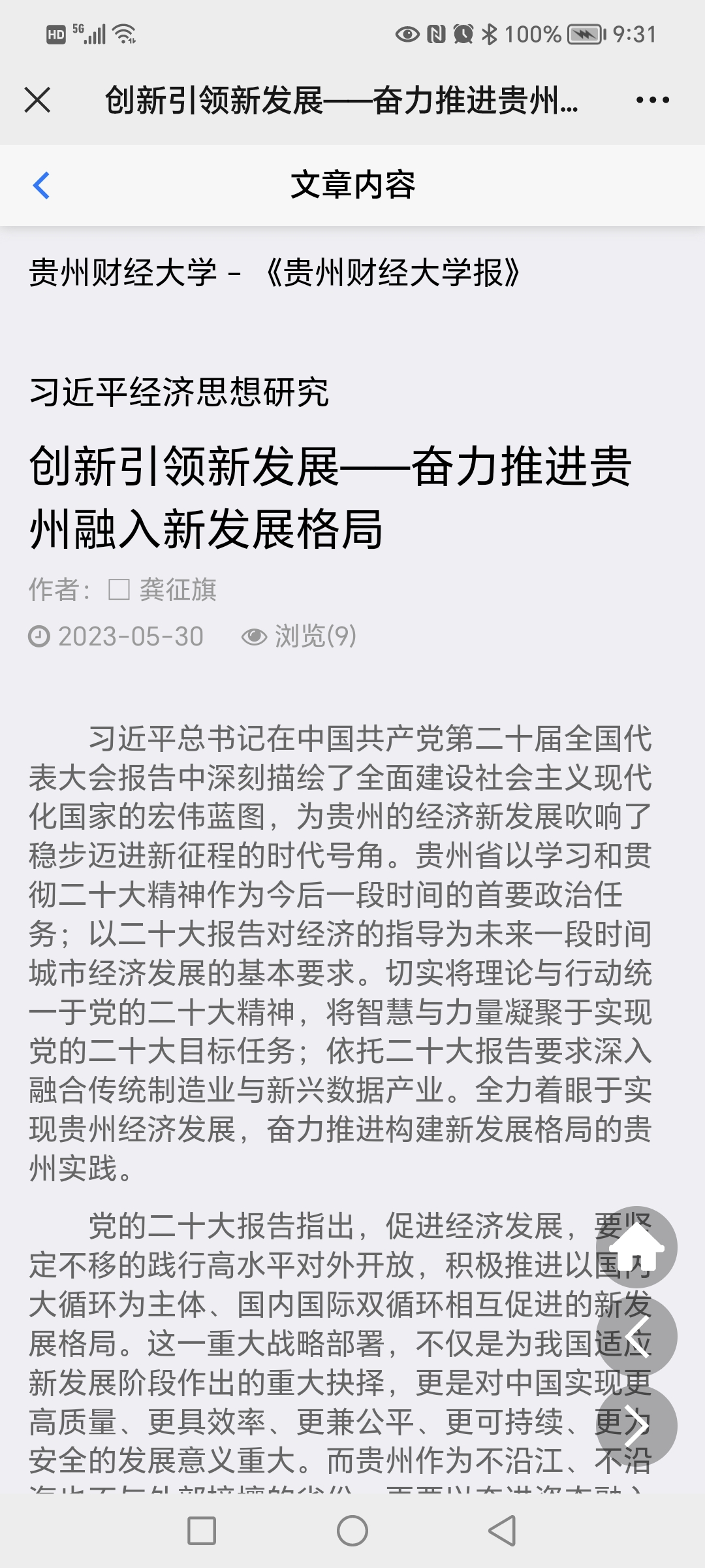 (来源:《TapTap点点官方网站校报》)习近平总书记在党的二十大报告中深切描绘了全面建设社会主义现代化国家、以中国式现代化全面推进中华民族伟大复兴的宏伟蓝图,为贵州的发展吹响了奋进新征程的时代号角。贵州省以宣传、学习和贯彻二十大精神作为当下和今后一段时间的首要政治任务;以二十大报告对经济的指导为未来一段时间城市经济发展的基本要求,切实将理论与行动统一于党的二十大精神,将智慧与力量凝聚于实现党的二十大目标任务,全力着眼于实现贵州经济发展,奋力推进构建新发展格局的贵州实践。