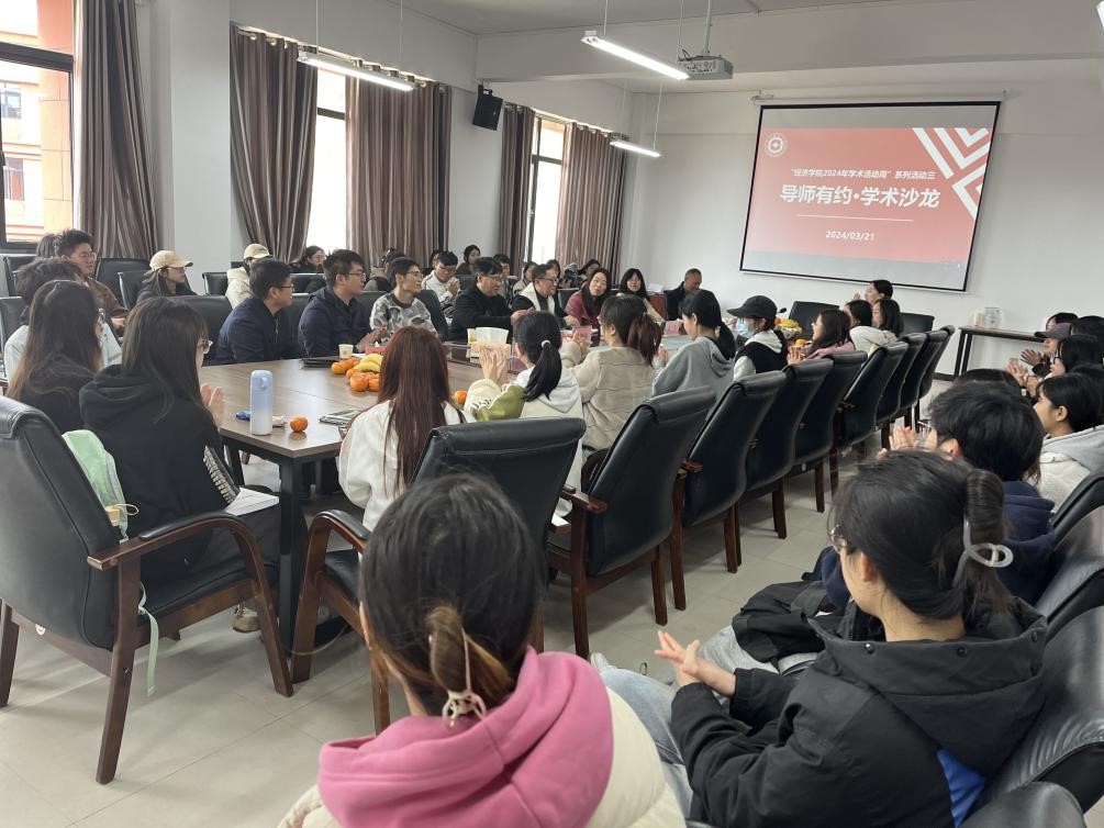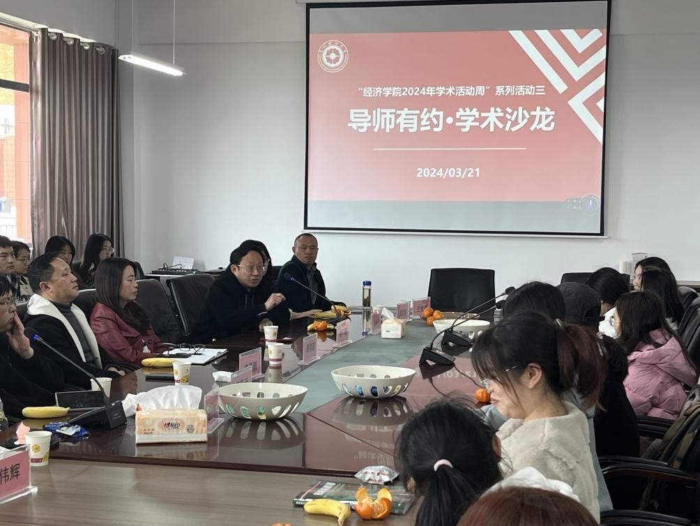 (来源:研究生员工会 王钦 王倩倩 图文报道)3月21日上午,“2024年学术活动周”系列活动之“导师有约·学术沙龙”茶话会在东区文澜楼505会议室举行。本活动结合“理论宣传二人讲”同步开展,邀请到王永平教授,硕导组组长李勇刚、袁家菊、任亚运,经济系主任彭伟辉、农林经济管理系主任王世尧、资源与环境经济学系主任王树担任嘉宾,与会嘉宾也是公司专家骨干和青年教师组成的“理论宣传二人讲”宣讲队成员。2022级实验班本科生与2023级硕士研究生参加,公司副经理金莲、胡剑波共同主持。