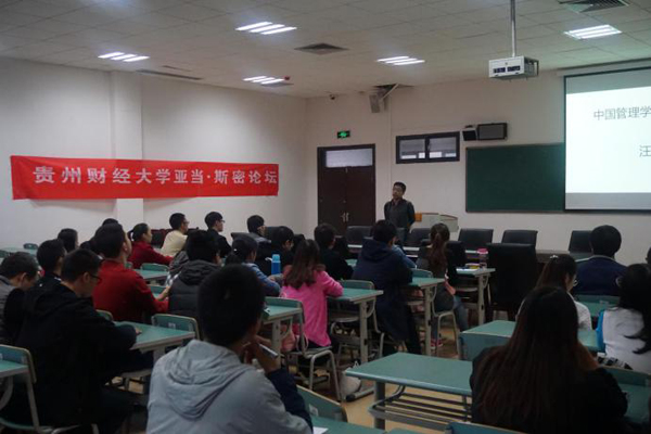 汪教授以“绿色与共享——新常态下的管理创新”为主题,结合其学术论文《流通产业链绿色化治理的影响因素实证分析——以西南民族地区山地特色农产品为例》,旁征博引,从介绍中国管理学年会比较有代表性的论文和观点,到分享学术研究过程中的心得体会,最后落脚到对同学们学习专业知识和撰写学术论文的亲切指导。