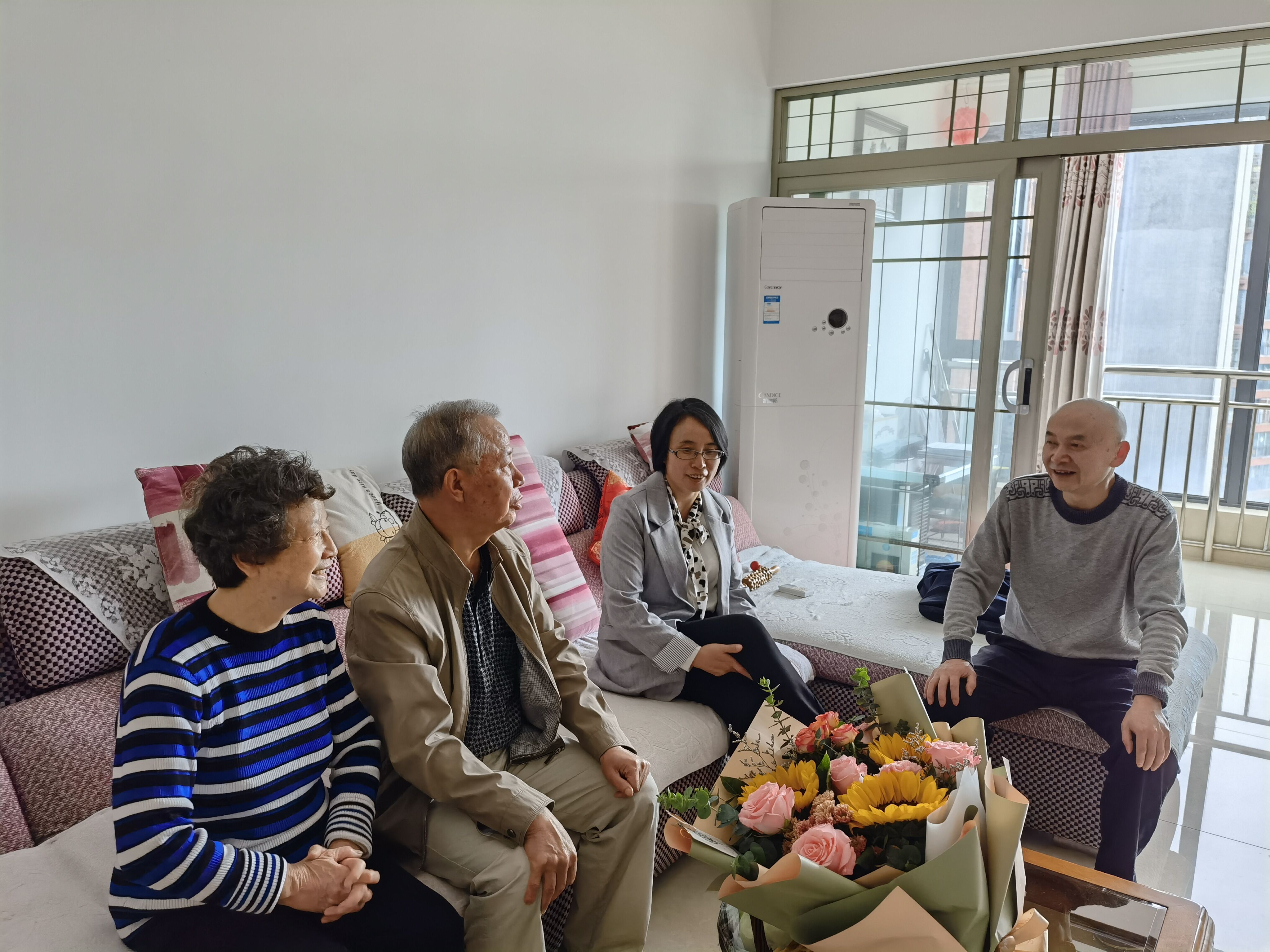 在两位老教师家中大家亲切座谈,朱红琼书记首先代表公司对两位老师为教育事业做出的贡献表示肯定与感谢,关切询问两位老师的退休生活及身体状况并表达真挚的问候和祝福。最后朱红琼书记诚挚邀请他们经常回公司看看,为公司的发展多提宝贵建议,特别是在关心下一代工作方面,还需老教师们发挥独特优势和作用,继续开展好爱党爱国爱社会主义教育,切实增强青少年感党恩、听党话、跟党走的思想自觉和行动自觉,进一步弘扬和传承好我们党的光辉历程和优良传统。